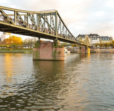Questa passerella di ferro sul fiume Meno, collega il centro di Francoforte con il quartiere di Sachsenhausen
