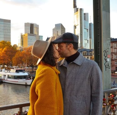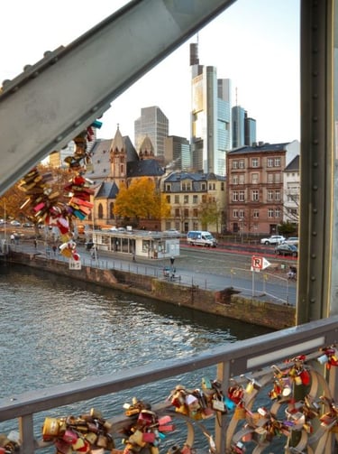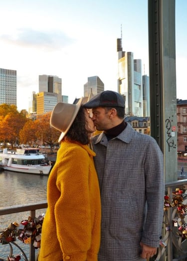 Ci concediamo l'ultimo bacio a Francoforte sul Meno con lo sfondo di lucchetti dell'Amore e i futuristici grattacieli, con il sole che regala gli ultimi raggi d'orati.