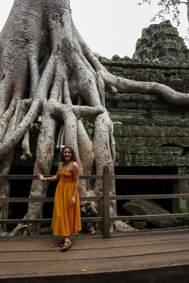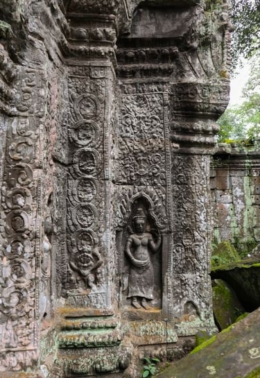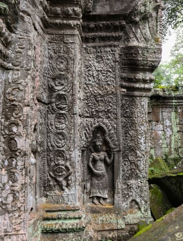 Ta Prohm è il tempio più fotografato del complesso: le radici degli alberi giganteschi avvolgono le rovine, creando un paesaggio quasi fiabesco che ha ispirato anche il set del film "Tomb Raider".